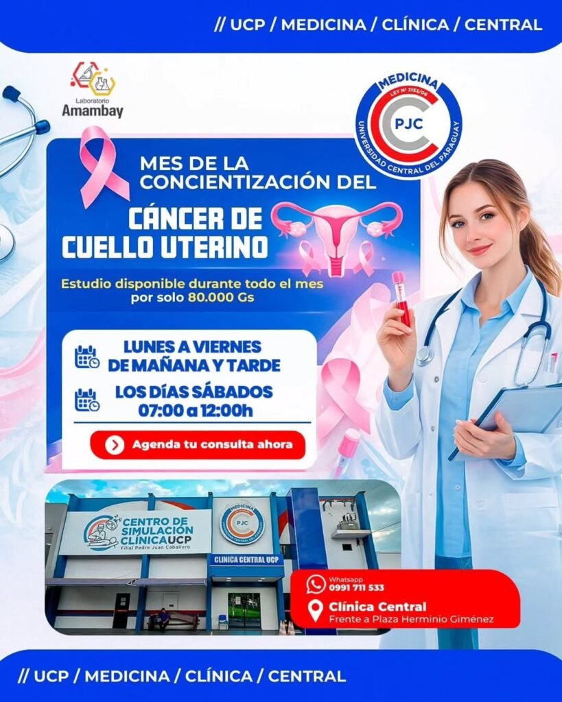 PONTA PORÃ / PEDRO JUAN CABALLERO. En el marco del Mes de la Concientización sobre el Cáncer de Cuello Uterino, la Clínica Central UCP puso en marcha una campaña de prevención dirigida a mujeres, ofreciendo durante todo el mes de marzo un estudio de detección a un costo promocional de 80.000 guaraníes.